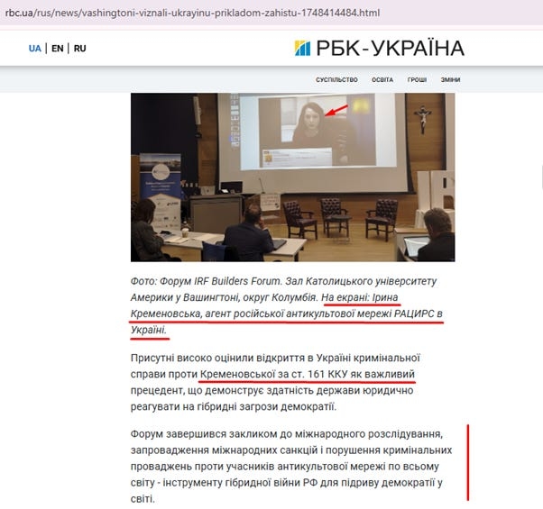 Тобто Кременовська є відкритим агентом фсб в Україні й це визнано на форму у Вашингтоні ще у 2025 р.