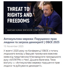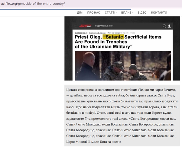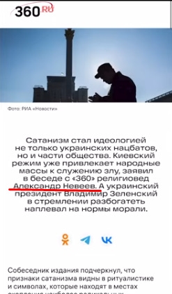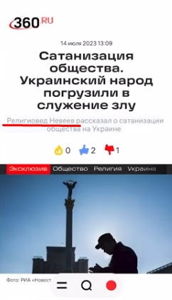 тескт зі скринів: «Сатанізація суспільства. Український народ занурився у служіння злу. Сатанізм став ідеологією не тільки українських нацбатів, але й частини суспільства. Київський режим вже залучає народні маси до служіння злу.»
