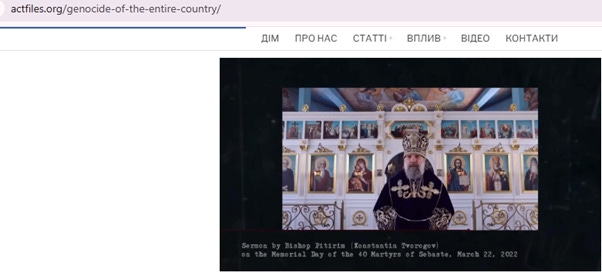 Цитата єпископа Питирима (Творогова): " Зрозуміло, що, люблячи Україну, Господь зараз її карає. І я ще раз повторю: щоб зрозуміти, що відбувається, потрібно зрозуміти, чому Господь карає Україну. Чому саме Україну? Українці зараз ненавидять росіян, бо росіяни – це лише "знаряддя Боже"; це як ремінь, яким батько карає свою дитину" ".