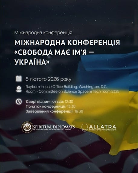 5 лютого 2026 року у Вашингтоні, округ Колумбія, на платформі «АЛЛАТРА» відбудеться Міжнародна конференція «У свободи є ім'я — Україна».