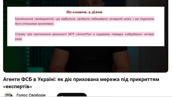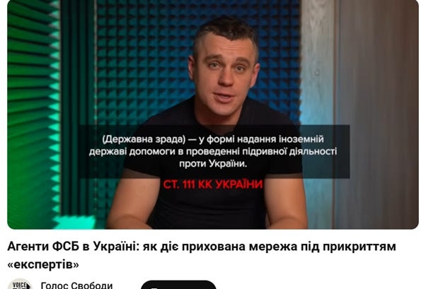 Для чого цей вкид? Для чого зроблено це порівняння? Якщо ви проаналізуєте, ця тактика прослідковується у всіх статтях. До речі, ця фраза вже тягне на 111 статтю Кримінального кодексу України «Державна зрада у формі надання іноземній державі допомоги в проведенні підривної діяльності проти України.»