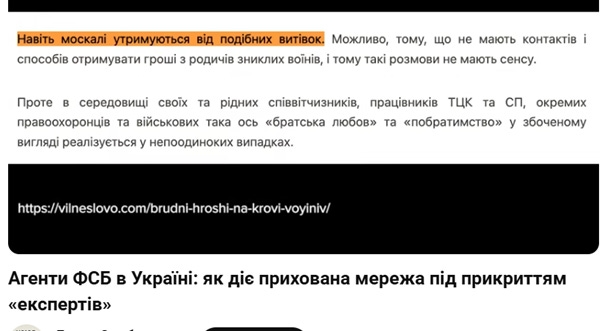 Самі подивіться на її статті на сайті #ВільнеСлово (портал Говори). Розберемо ключові цитати зі статті «Брудні гроші на крові воїнів».