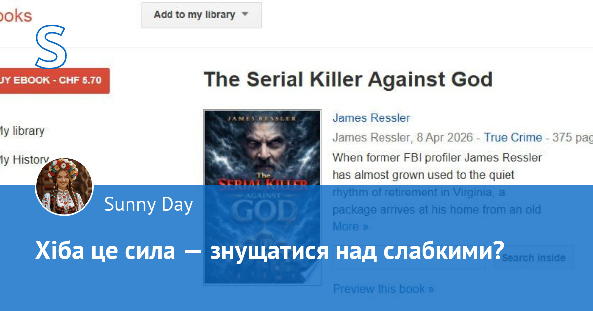 Спочатку було здивування. Потім — огида, а зараз... А зараз — шок: книга Джеймса Ресслера «Маніяк проти Бога» вимальовує портрет маніяка, який отримує задоволення від знущання над своїми жертвами. Над сотнями жертв. Над тисячами жертв.І кількість їх зростає.