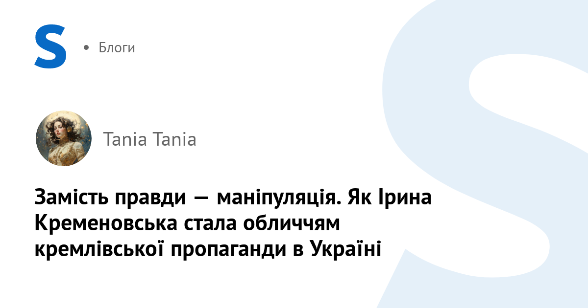 На тому ж ресурсі, де щоденно ллють бруд на Україну, де гучними заголовками кричать про «неонацистський режим», «секту Україна» та виправдовують агресію проти мирного населення — саме там з'являється стаття про «молодецьку» Ірину Кременовську. Вона там — не ворог, не зрадниця, не агент. Вона — «експертка», «борчиня», «захисниця моралі». Саме таку роль їй відвели ті, хто вже вісім років палить українські міста.