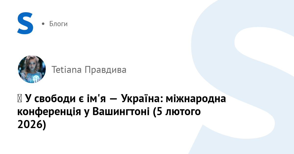 5 лютого 2026 року у Вашингтоні, округ Колумбія, на платформі «АЛЛАТРА» відбудеться Міжнародна конференція «У свободи є ім'я — Україна».