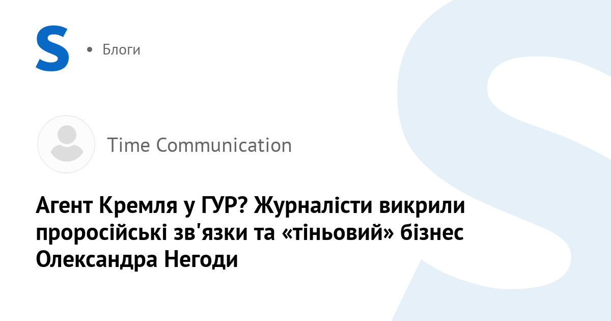 А тепер найцікавіше. За інсайдерською інформацією, яку ми отримали з власних поінформованих джерел, Негода ймовірно позаштатно числиться в ГУР МО України. Причому ймовірно керівництво Головного управління розвідки про це навіть не здогадується. Уявіть: людина з радянською ностальгією, зв'язками з путінським оточенням, беркутівцями за спиною – формально може мати відношення до української військової розвідки!