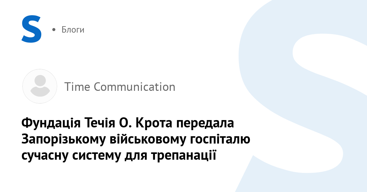 Фундація Течія Олега Крота передала Запорізькому військовому госпіталю сучасну систему для трепанації та краніотомії