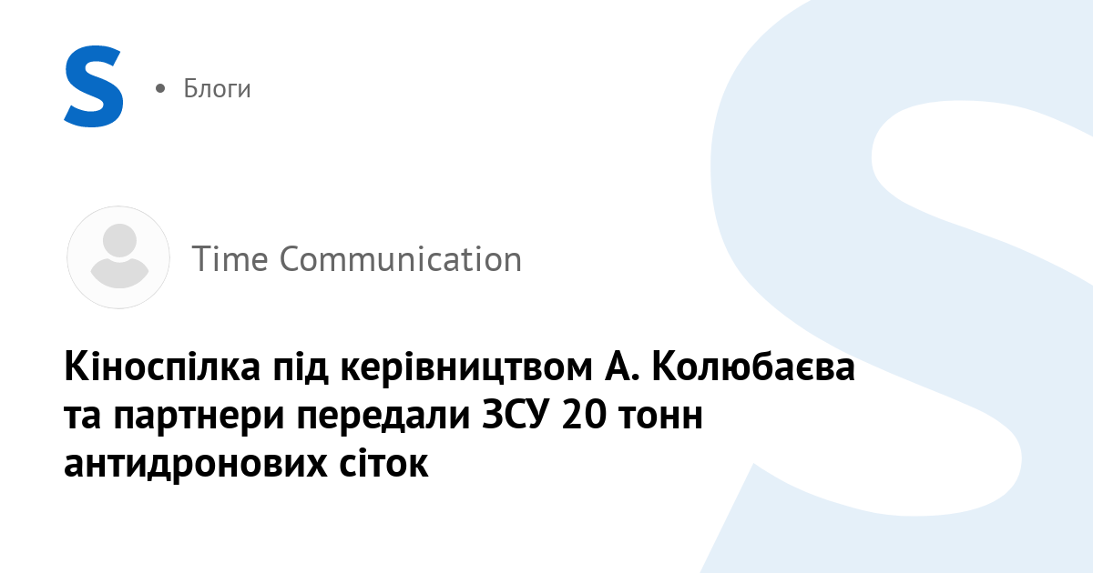 ГО «Спілка підприємців кіно- та телеіндустрії» на чолі з Артемом Колюбаєвим спільно з партнерами — ГО «Фундацією Течія» та БФ «Батальйон Волонтер» — передала для потреб української армії ще 20 тонн риболовецьких сіток. Ці сітки отримали друге життя — на фронті їх застосовують як антидроновий захист: для облаштування тунелів, маскування техніки та укриттів, створення «доріг життя», якими пересуваються бійці та вантажі.
