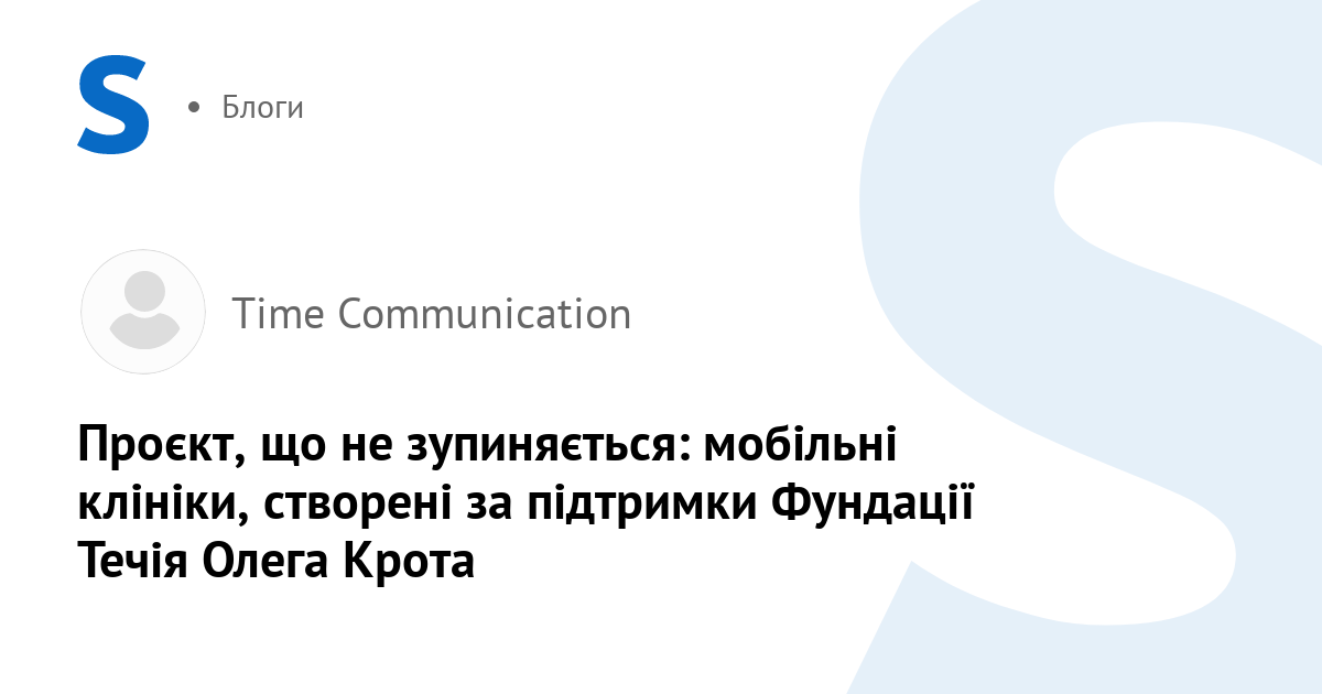 Фундація Течія, співзасновником якої є Олег Крот, брала безпосередню участь у запуску цього проєкту: у 2023 році за її кошти, а саме 8,8 мільйонів гривень, було придбано три мобільні клініки, повністю оснащені необхідним обладнанням. Це був старт, який дозволив розгорнути роботу одразу в кількох напрямках і охопити критично важливі зони.