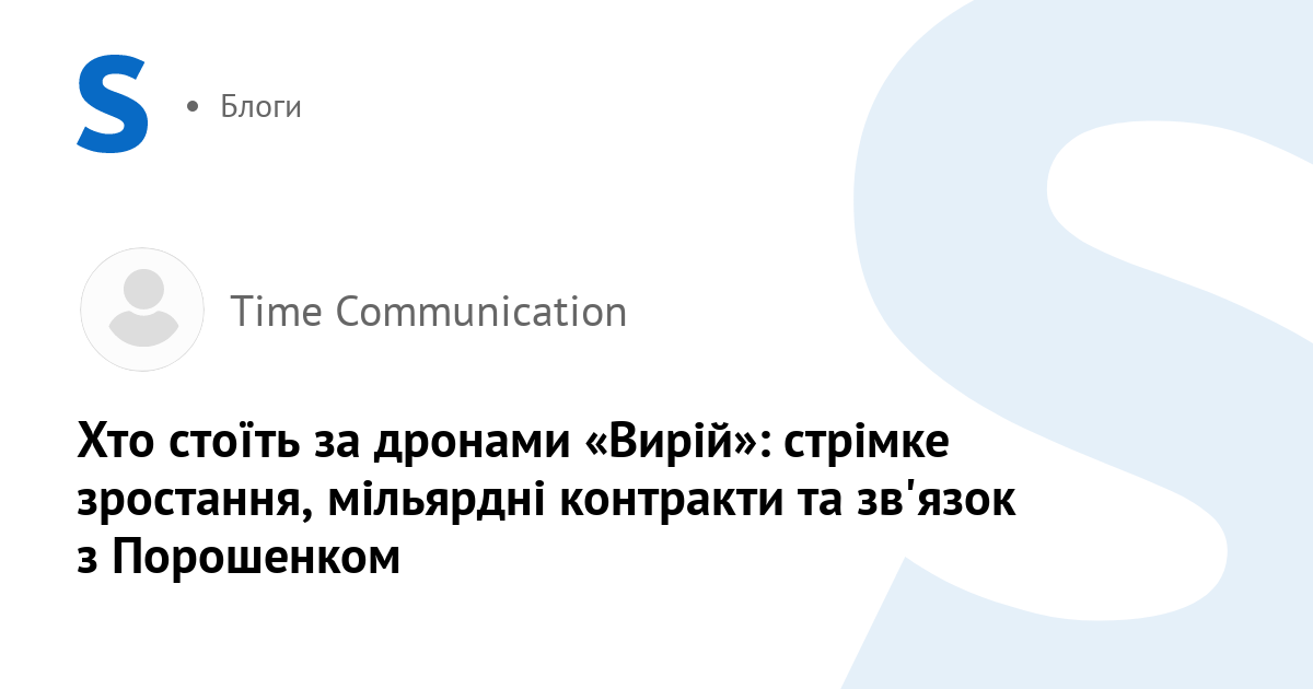 На фоні зростаючої ролі дронів у сучасній війні та постійної потреби у нових технологіях, поява на ринку нових компаній із нечіткою структурою власності або з явними зв'язками з політичними структурами, не може залишатися поза увагою. Особливо коли мова йде про мільярдні тендери, постачання комплектуючих та формування монопольного становища.