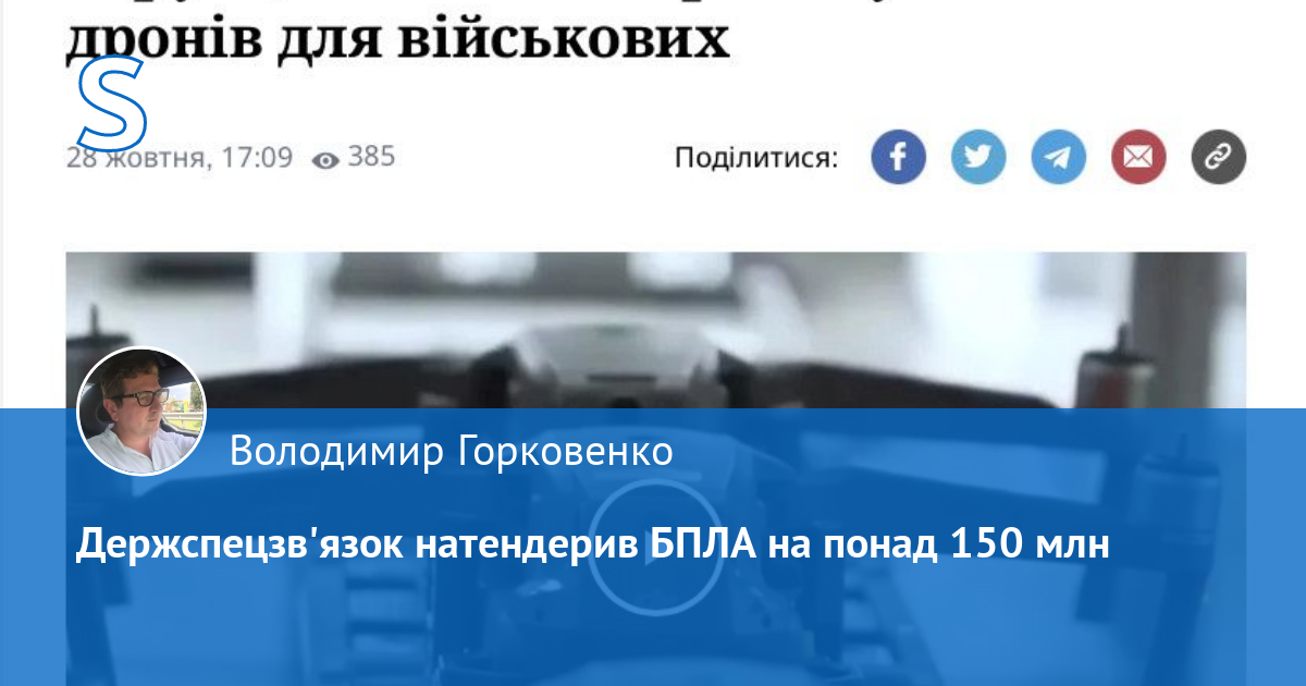 Сьогодні зʼявилося повідомлення НАБУ і САП, котрі викрили масштабну оборудку, організовану посадовцями Держспецзв'язку та представниками приватних компаній під час закупівель безпілотників для Сил оборони України. За даними слідства, після ухвалення змін до Державного бюджету у 2023 році, Держспецзв'язку було виділено 30 млрд грн на закупівлю БпЛА. У керівника одного з департаментів відомства виник план розтрати частини цих коштів.
