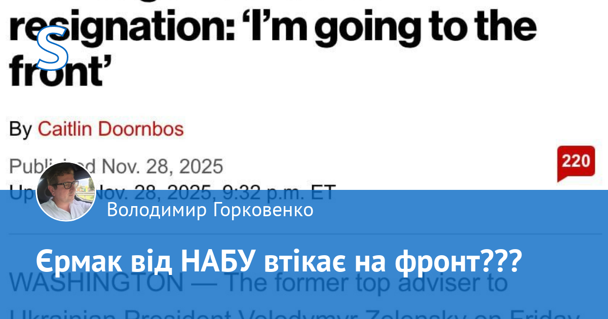 - Попри соплі та воплі, ключовим посилом заяви Єрмака є те, що він йде на фронт. По-перше, як "чесна та порядна" людина він навряд чи піде саме на фронт. Але мобілізація — оце дуже реально. І не тому, що Єрмак такий патріот: а тому що військовослужбовець — це підслідність ДБР. Того ДБР, який і є інструментом репресій у Зеленського. Тобто, у випадку мобілізації Єрмака його справу ДБР може витребувати у НАБУ та успішно похоронити.