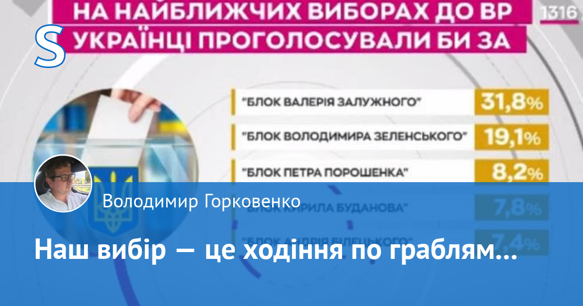 У нас величезна проблема з політичною культурою вибору. Її просто не існує. Тому нарід й обирає політиків вже із зіпсованою репутацією. Тому сьогодні ми живемо рівно так як голосували учора. Просто, це усвідомлює критично мала кількість людей. В результаті — наш вибір — це ходіння по граблям...
