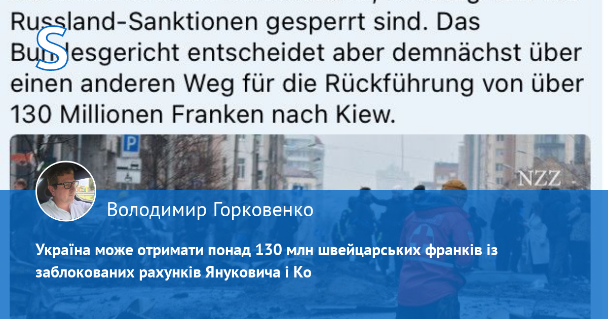 Швейцарська влада наблизилась до ухвалення рішення, яке потенційно дозволить передати Україні понад 130 мільйонів швейцарських франків, заморожених на рахунках наближених до Віктора Януковича осіб. Справа, яка кілька років залишалася в «замороженому» стані, нині переходить у вирішальну фазу. Про це пише Neue Zürcher Zeitung