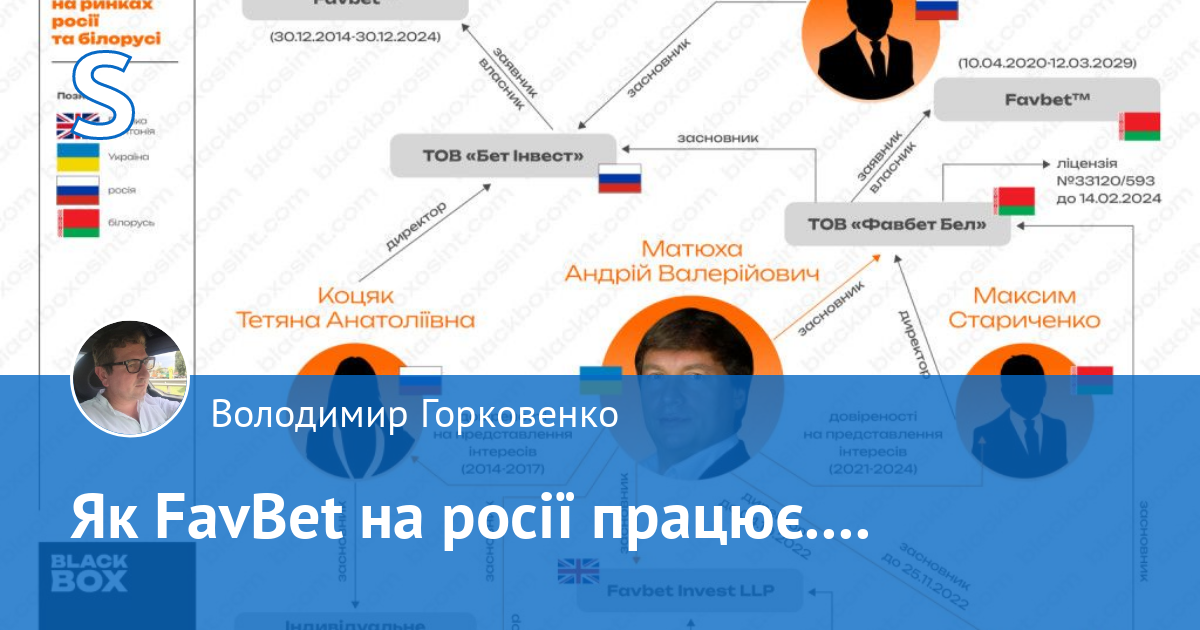 А в Білорусі досі діє ТОВ «Фавбетбел», на яке зареєстровано чотири торгові знаки Favbet, три з яких дійсні до 2028 та 2029 років. Засновниками ТОВ «Фавбетбел» на сьогоднішній день, згідно даних білоруських реєстрів, продовжує бути особисто Андрій Матюха, а також його британська компанія Andalidi Invest LTD.