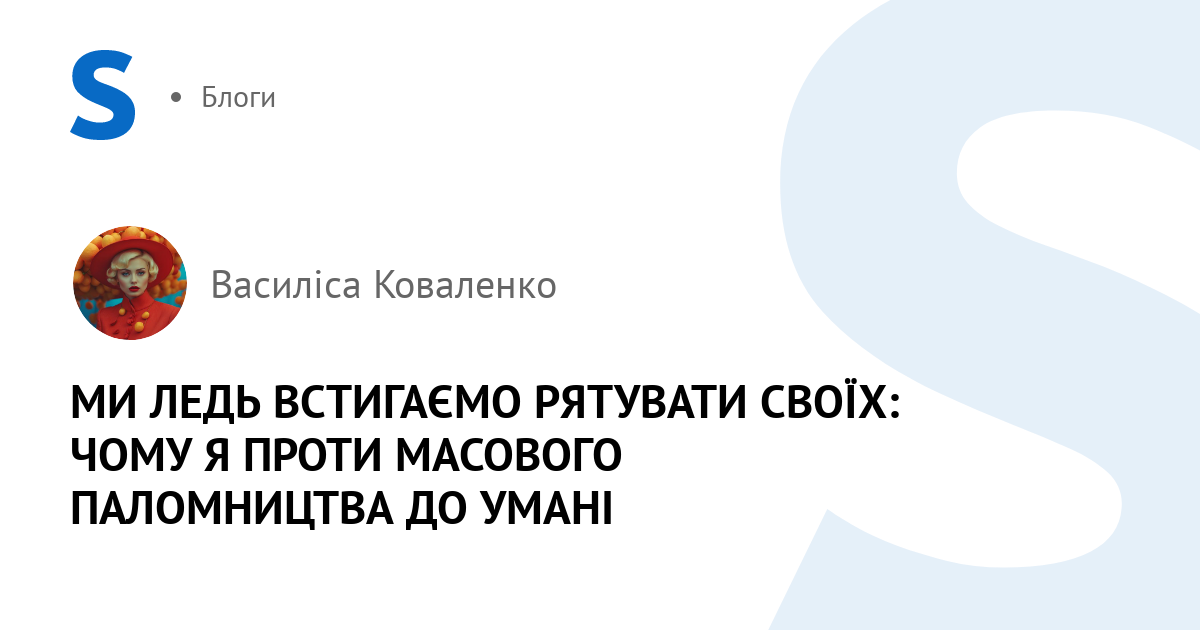 Коли я бачу, як мої друзі-волонтери збирають копійка до копійки на дрони для фронту, на ліки для поранених, на генератори для лікарень... А потім дізнаюся, що величезні ресурси підуть на охорону паломників, які свідомо їдуть у небезпечну зону...