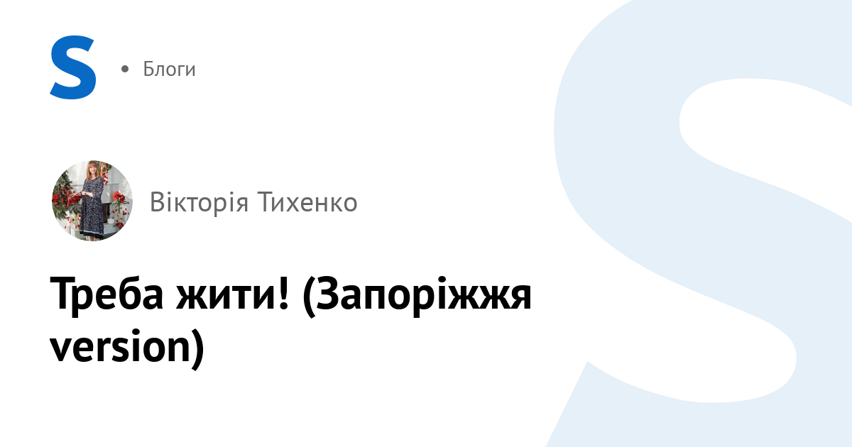 Треба жити! Не чуть-чуть, не трішки, не завтра, не з понеділка. По-справжньому! Вже! Треба гладити котів, гуляти проспектом, їсти черешні, везти собаченят із фронту на старій «Ладі-Калина», робити ремонт і приносити щастя тим, кого любимо, а кого не любимо — тому приносити лише кислі абрикоси в сезон. Треба купувати плаття з пайєтками і давати на військо, полювати за РЕБами і генераторами зі знижкою, а ще — лазати, поки не потемніло, посадками , бо на перший урок треба принести каштани, жолуді та інший реманент.