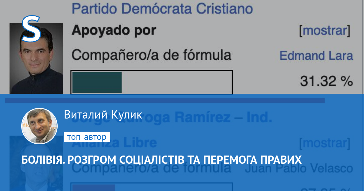 17 серпня в Болівії відбувся перший тур президентських виборів. В результаті голосування правлячий «Рух до соціалізму» зникає з політичної карти Болівії. Кандидати, так чи інакше пов'язані з правлячими соціалістами, провалилися, набравши менше 12%.