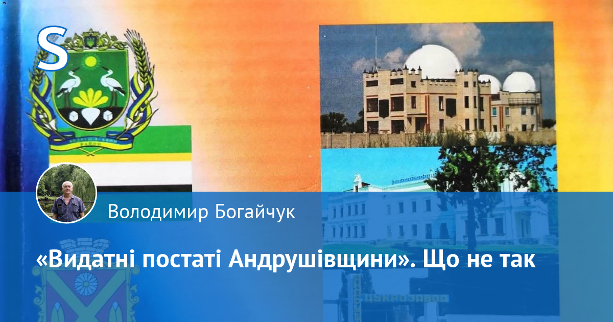 І це не єдині ляпи в книзі «Видатні постаті Андрушівщини». Нажаль. Бо значна частка згаданих у книзі людей дійсно є видатними особистостями тай Андрушівщина потребує достойного місця в інформаційному просторі сучасності. Але байдужість до результату ввіреної роботи, упередженість і низький професіоналізм звели нанівець гарну задумку.