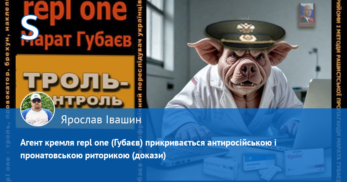 Частину інформації про Губаєва мені довелося шукати через VPN на російських площадках, де він „промишляв“, де один з користувачів ЖЖ, який полемізував там з Губаєвим, вирішив зробити дослідження, і в кінці дослідження прийшов до висновку, що repl one – це ціла ботоферма з зазначенням численних аккаунтів і їхніх адрес.