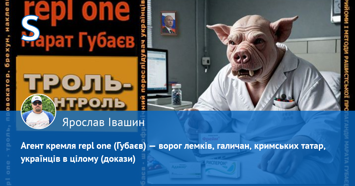 Свинопсу Губаєву, який прикривається антиросійською риторикою, начхати на УСІХ кримських татар, на УСІХ галичан, на УСІХ українських лемків, на УСІХ греко-католиків і українців в цілому, як і на національний символ українців — Т. Шевченка (докази нижче).