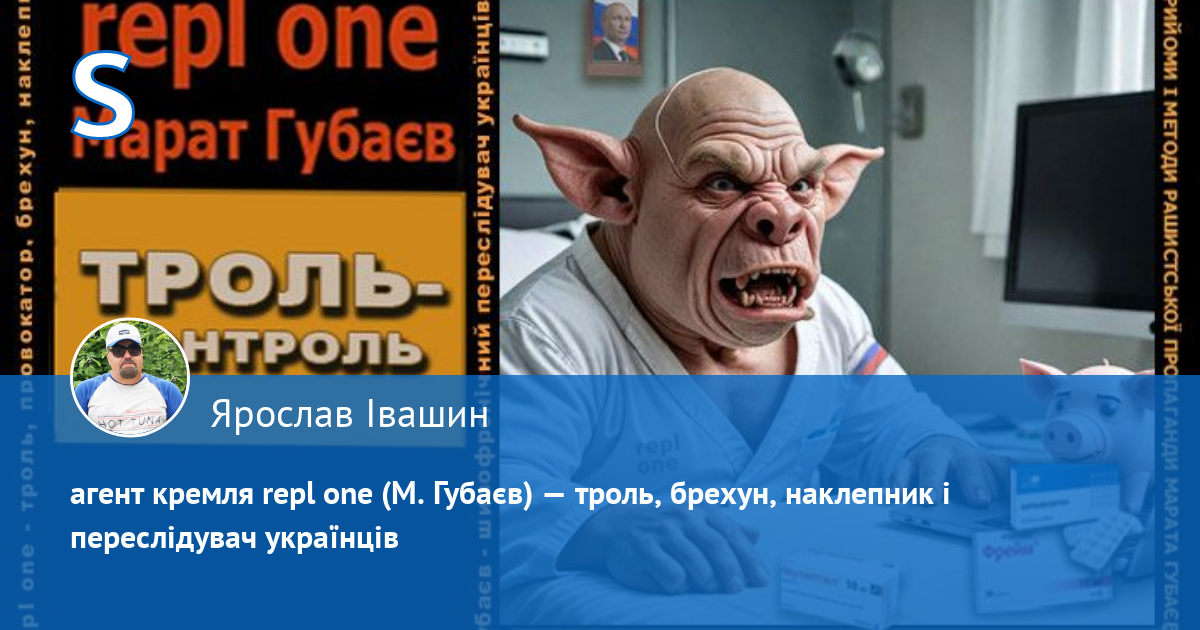 Кремлівського свинопса Губаєва, який прикриваєтьсться анонімним агентурним псевдо repl one, а також проНАТОвською і антиросійкою риторикою, вкотре виведено на чисту воду і викрито, як агента, що працює на рашистів.