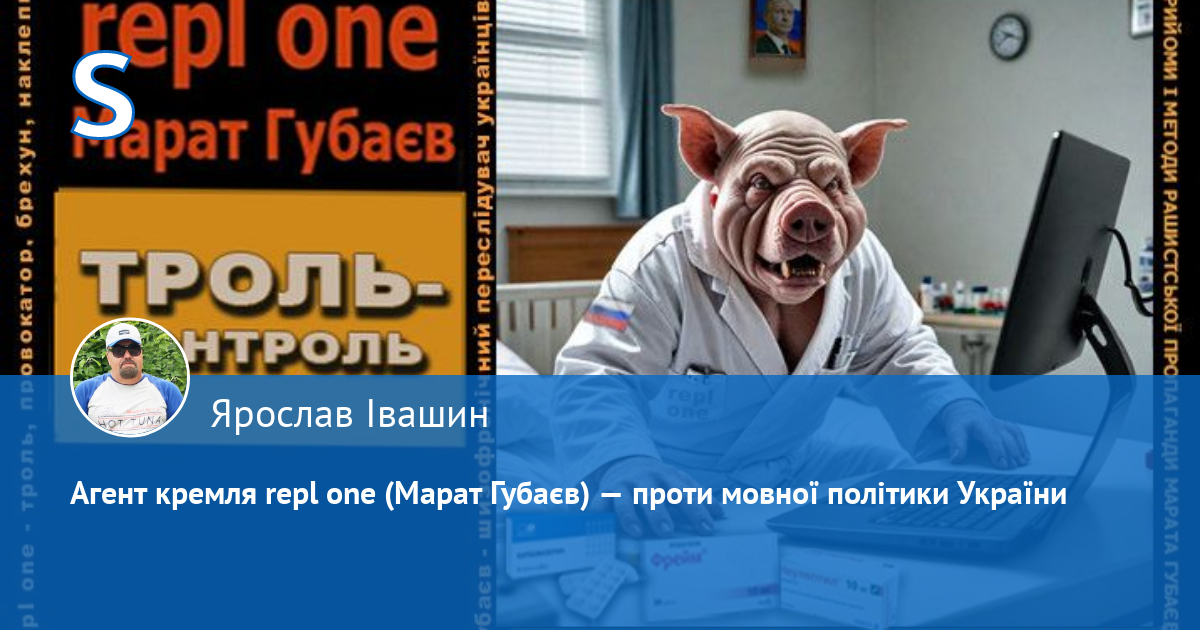 Розкладаємо по поличках останні наклепи Марата Ернстовича Губаєва, що проживає за адресою м.Харків, пр. Ак. Курчатова 28, кв. 69.), який ПЕРЕСЛІДУЄ українців у мережі на різних українських ресурсах під різними ніками (в даному випадку repl one) і який ПЕРШИМ (!) (зверніть увагу на час публікацій) розводить і провокує срач, шляхом цинічних наклепів, у яких переплюнув рашистських пропагандистів,