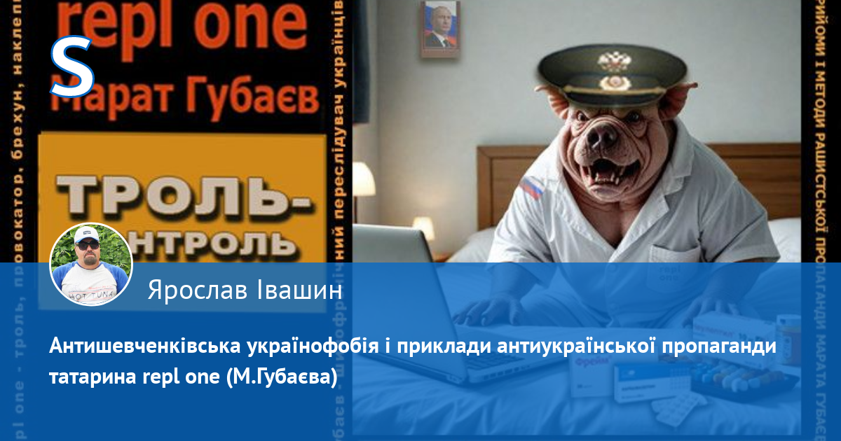 За антиросійською і пронатовською риторикою аноніма "repl one" ховається шизофренічний кремлівський свинопес кримсько-татарського походження Марат Губаєв, який ПЕРЕСЛІДУЄ українців у мережі. Він ПЕРШИМ (!) (зверніть увагу на час публікацій) розводить і провокує срач, шляхом цинічних наклепів, у яких переплюнув рашистських пропагандистів. Свинопес (свинособака) — це не образа. Він визнає, що він свинопес, бо його аватарка на одному з багатьох анонімних профілів, де він гадив українцям, саме так підписана: