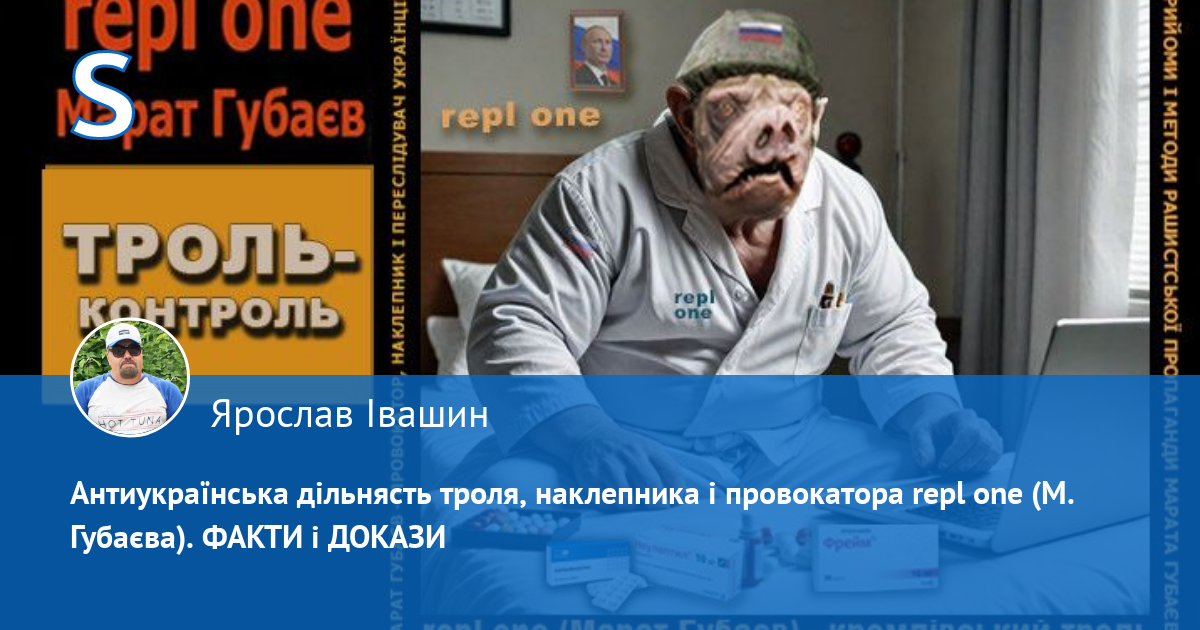 За антиросійською і пронатовською риторикою аноніма 'repl one' ховається шизофренічний кремлівський брехливий свинопес -  маніпулятор кримсько-татарського походження Марат Губаєв, який ПЕРЕСЛІДУЄ українців у мережі. Він ПЕРШИМ (!) (зверніть увагу на час публікацій) розводить і провокує срач, шляхом цинічних наклепів, у яких переплюнув рашистських пропагандистів. Він визнає, що він свинопес, бо його аватарка на одному з багатьох анонімних  профілів, де він гадив українцям, саме так підписана: