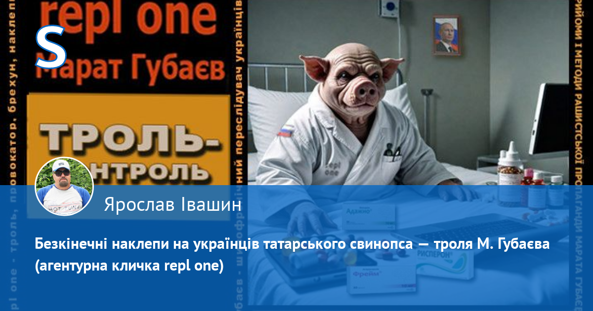 Останнім часом троль, брехун, наклепник, переслідувач українців – татарський шизофренік Марат Губаєв (агентурна кличка repl one) став на захист ще одного кремлівського пропагандиста Юрія Шеляженко. При цьому вдався до маразматичних наклепів (цитата пропагандиста, який ховається за антиросійською і пронатовською риторикою):