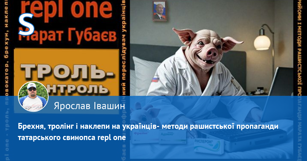 За антиросійською і пронатовською риторикою аноніма "repl one" ховається шизофренічний кремлівський брехливий свинопес - маніпулятор кримсько-татарського походження Марат Губаєв, який ПЕРЕСЛІДУЄ українців у мережі. Він ПЕРШИМ (!) (зверніть увагу на час публікацій) розводить і провокує срач, шляхом цинічних наклепів, у яких переплюнув рашистських пропагандистів. Він визнає, що він свинопес, бо його аватарка на одному з багатьох анонімних профілів, де він гадив українцям, саме так підписана: