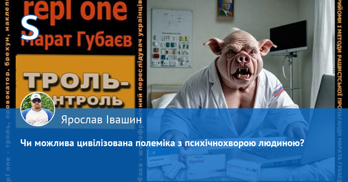 Вступ. Агент кремля Марат Губаєв, який переслідує українців під позивним repl one, час від часу любить ставити опонентам провокативні питання. Але хіба доцільно вести цивілізовану полеміку с психічнохворою людиною?