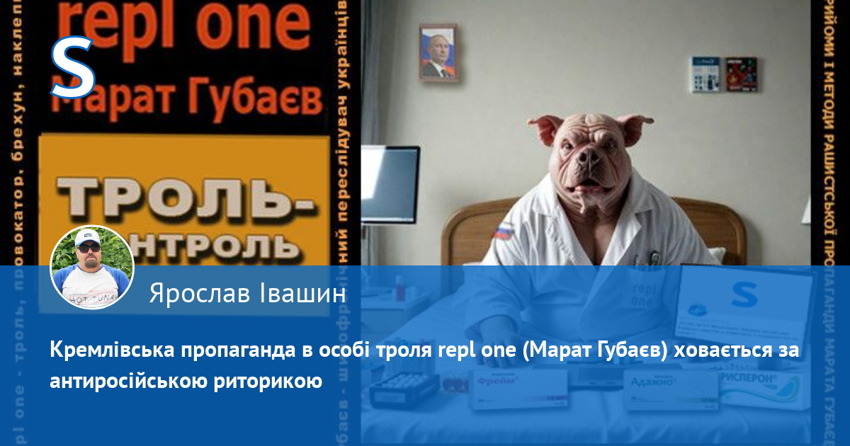 Таким чином, прикриваючись антиросійською риторикою, троль repl one працює на кремль і на капітуляцію України.