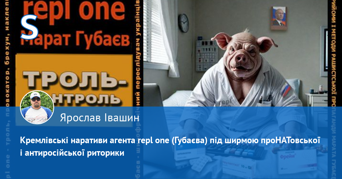 Переслідуючи мене за те, що я писав, аби у плані путлєра, який зараз часто називають планом Трампа, були передбачені інтереси України, а не лише рашки, агент кремля Губаєв тут і далі пропагандонить під анонімною агентурною кличкою repl one, де під приховом антиросійської і пронатовської риторики на цьому сайті займається провокаціями, брехнею, наклепами, сіянням міжетнічної і міжконфесійної ворожнечі, дискредитацією ЗСУ і головнокомандуючого, дискредитацією Конституції України і національних символів українців і переслідуваннями своїх опонентів.