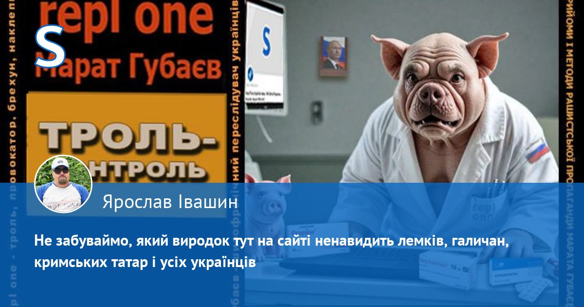 ЯК БАЧИМО, ТАТАРИН МАРАТ ГУБАЄВ, ЩО В УКРАЇНСЬКИХ СОЦМЕРЕЖАХ ПРАЦЮЄ ПІД АГЕНТУРНОЮ КЛИЧКОЮ REPL ONE — ЦЕ УКРАЇНОФОБ, ВОРОГ УКРАЇНЦІВ, ЯКИЙ ПІД ПРИКРИТТЯМ АНТИРОСІЙСЬКОЇ ПОЛЕМІКИ ВЕДЕ ПРОПАГАНДУ РАЩИСТСЬКИХ НАРАТИВІВ В ІНТЕРЕСАХ КРЕМЛЯ, ЯКИЙ СІЄ МІЖНАЦІОНАЛЬНУ І МІЖРЕЛІГІЙНУ ВОРОЖНЕЧУ, ДИСКРАДИТУЄ ЗСУ І ГОЛОВНОКОМАНДУЮЧОГО, ДИСКРЕДИТУЄ УКРАЇНСЬКІ НАЦІОНАЛЬНІ СИМВОЛИ І КОНСТИТУЦІЙНІ ЗАСАДИ УКРАЇНИ, ЧИНИТЬ НАКЛЕПИ І ПЕРЕСЛІДУЄ УКРАЇНЦІВ В СОЦМЕРЕЖАХ, ПРИ ЦЬОМУ ХВОРІЄ ТЯЖКОЮ ФОРМОЮ ШИЗОФРЕНІЇ.