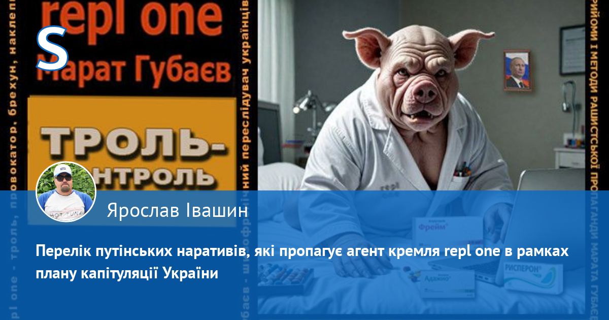 Так званий план Трампа з 28-ми пунктів насправді є планом путлєра, незграбно перекладений на англійську, докази чого будуть нижче, а зараз перейдемо до змісту того, за що виступає останнім часом путінська мразь в особі татарського ублюдка — свинопса Марата Ернстовича Губаєва (мешканця м. Харків, пр. Ак. Курчатова 28, кв. 69.), який ПЕРЕСЛІДУЄ українців у мережі під анонімною агентурною кличкою repl one. Він ПЕРШИМ (!) (зверніть увагу на час публікацій) розводить і провокує срач, шляхом цинічних наклепів, у яких переплюнув рашистських пропагандистів. Він визнає, що він свинопес, бо його аватарка на одному з багатьох анонімних профілів, де він гадив українцям, саме так підписана: