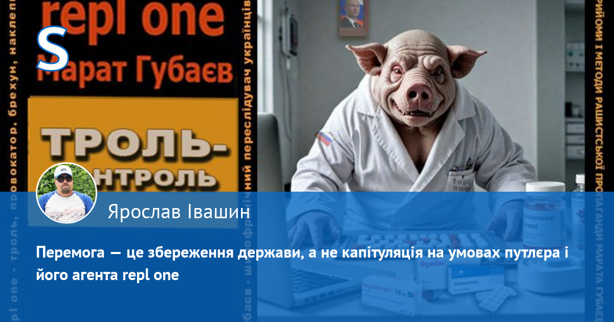 Путінська мразь в особі татарського ублюдка — свинопса Марата Ернстовича Губаєва (мешканця м. Харків, пр. Ак. Курчатова 28, кв. 69.), який ПЕРЕСЛІДУЄ українців у мережі під анонімною агентурною кличкою repl one, і який ПЕРШИМ (!) (зверніть увагу на час публікацій) розводить і провокує срач, шляхом цинічних наклепів, у яких переплюнув рашистських пропагандистів, зробив ще одну невдалу спробу захистити рашистські наративи шляхом брехні, ніби план з 28-ми пунктів співпадає з європейськими пропозиціями з 19-ти пунктів. Губаєв, вміло і лицемірно маніпулюючи смертями жертв війни, визнає, що він свинопес, бо його аватарка на одному з багатьох анонімних профілів, де він так само гадив українцям, саме так підписана: