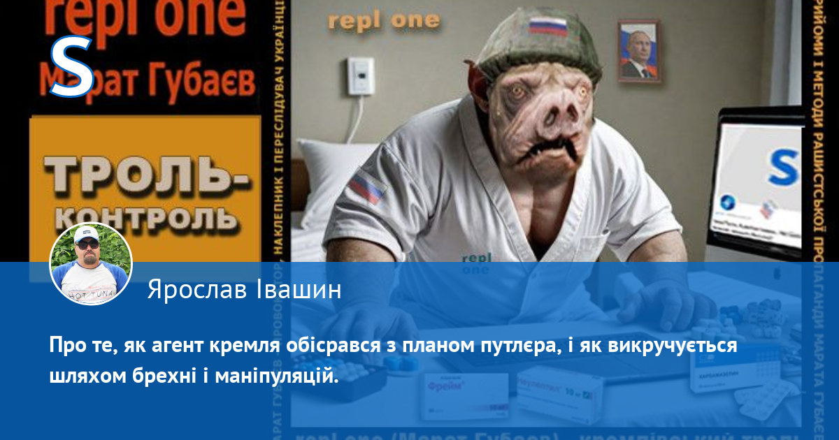 Далі переслідуючи мене за те, що я писав, аби у плані путлєра, який зараз часто називають планом Трампа, були передбачені інтереси України, а не рашки, агент кремля Марат Ернстович Губаєв (м. Харків, пр. Ак. Курчатова 28, кв. 69.), тут і далі пропагандонить під анонімною агентурною кличкою repl one і дивним чином називає усіх своїх опонентів чомусь порохоботами і галичанами, під приховом антиросійської і пронатовської риторики на цьому сайті займається провокаціями, брехнею, наклепами, сіянням міжетнічної і міжконфесійної ворожнечі, дискредитацією ЗСУ і головнокомандуючого, дискредитацією Конституції України і національних символів українців і переслідуваннями своїх опонентів.