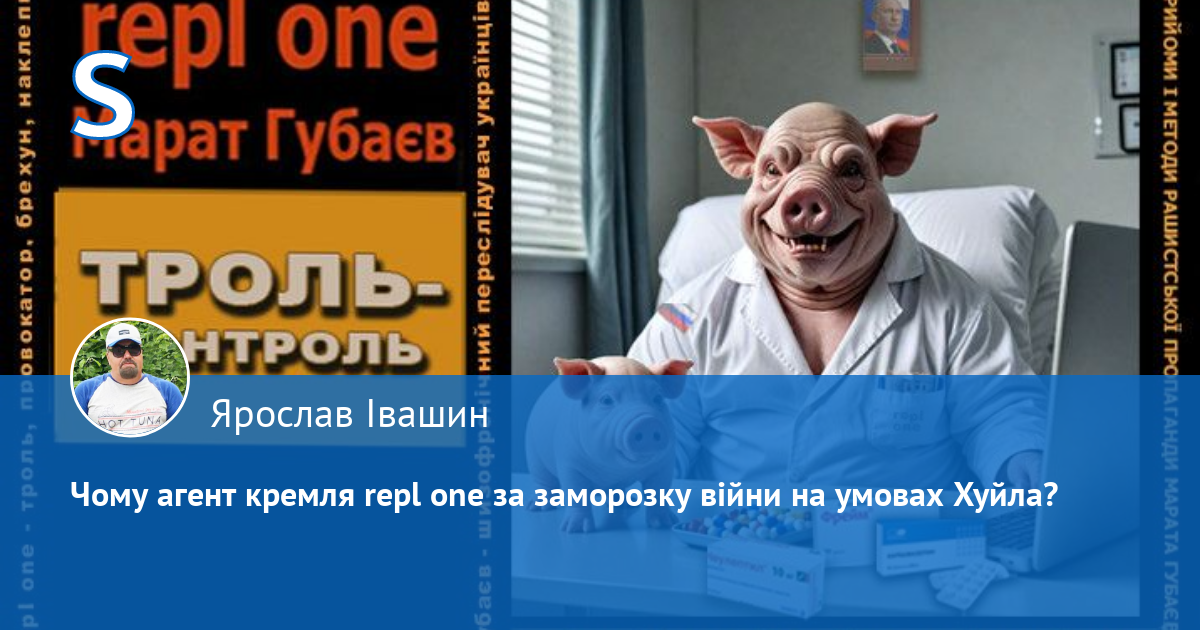 Путінська мразь в особі татарського ублюдка — свинопса Марата Ернстовича Губаєва (мешканця м. Харків, пр. Ак. Курчатова 28, кв. 69.), який ПЕРЕСЛІДУЄ українців у мережі під анонімною агентурною кличкою repl one, і який ПЕРШИМ (!) (зверніть увагу на час публікацій) розводить і провокує срач, шляхом цинічних наклепів, у яких переплюнув рашистських пропагандистів, зробив ще одну невдалу спробу захистити рашистські наративи шляхом брехні, ніби план з 28-ми пунктів співпадає з європейськими пропозиціями з 19-ти пунктів. Губаєв, вміло і лицемірно маніпулюючи смертями жертв війни, визнає, що він свинопес, бо його аватарка на одному з багатьох анонімних профілів, де він так само гадив українцям, саме так підписана: