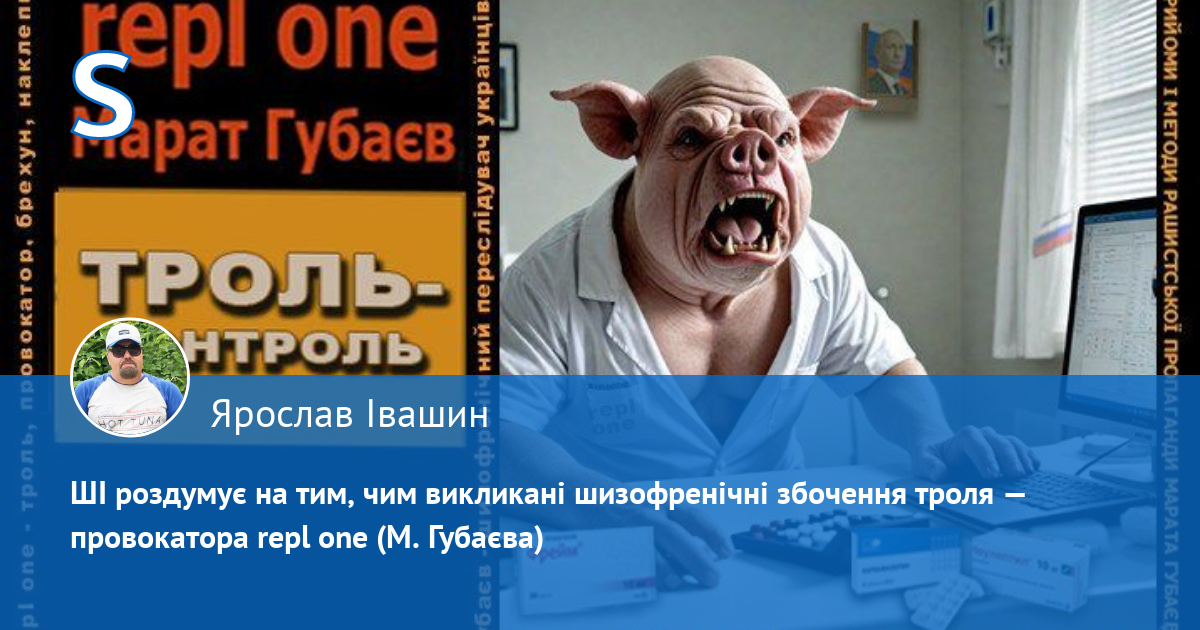 ЯК БАЧИМО, ТАТАРИН МАРАТ ГУБАЄВ, ЩО В УКРАЇНСЬКИХ СОЦМЕРЕЖАХ ПРАЦЮЄ ПІД АГЕНТУРНОЮ КЛИЧКОЮ REPL ONE — ЦЕ УКРАЇНОФОБ, ВОРОГ УКРАЇНЦІВ, ЯКИЙ ПІД ПРИКРИТТЯМ АНТИРОСІЙСЬКОЇ ПОЛЕМІКИ ВЕДЕ ПРОПАГАНДУ РАЩИСТСЬКИХ НАРАТИВІВ В ІНТЕРЕСАХ КРЕМЛЯ, ЯКИЙ СІЄ МІЖНАЦІОНАЛЬНУ І МІЖРЕЛІГІЙНУ ВОРОЖНЕЧУ, ДИСКРАДИТУЄ ЗСУ І ГОЛОВНОКОМАНДУЮЧОГО, ДИСКРЕДИТУЄ УКРАЇНСЬКІ НАЦІОНАЛЬНІ СИМВОЛИ І КОНСТИТУЦІЙНІ ЗАСАДИ УКРАЇНИ, ЧИНИТЬ НАКЛЕПИ І ПЕРЕСЛІДУЄ УКРАЇНЦІВ В СОЦМЕРЕЖАХ, ПРИ ЦЬОМУ ХВОРІЄ ТЯЖКОЮ ФОРМОЮ ШИЗОФРЕНІЇ.