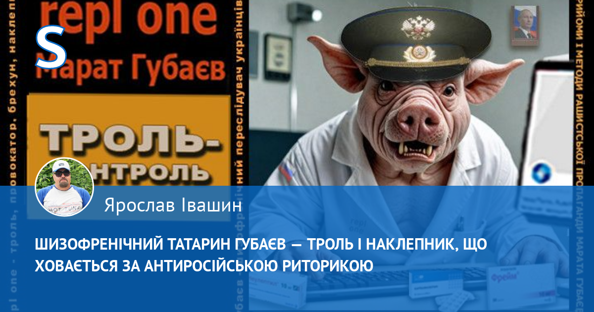 За антиросійською і пронатовською риторикою аноніма 'repl one' ховається шизофренічний кремлівський свинопес кримсько-татарського походження Марат Губаєв, який ПЕРЕСЛІДУЄ українців у мережі. Він ПЕРШИМ (!) (зверніть увагу на час публікацій) розводить і провокує срач, шляхом цинічних наклепів, у яких переплюнув рашистських пропагандистів.