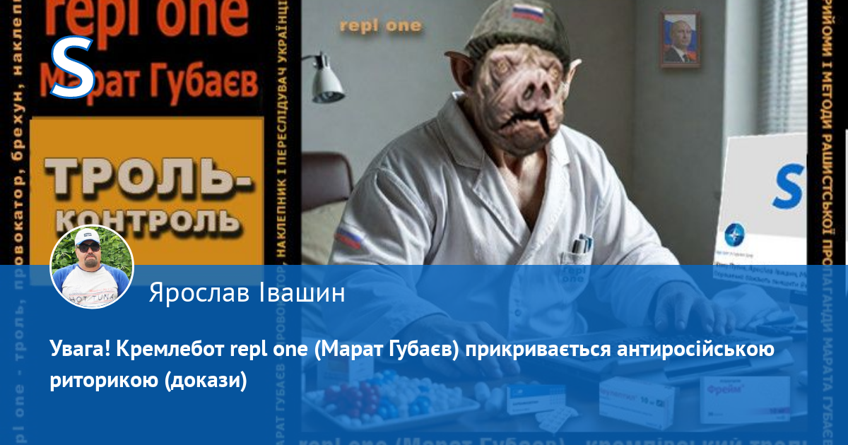 Частину інформації про Губаєва мені довелося шукати через VPN на російських площадках, де він „промишляв“, де один з користувачів ЖЖ, який полемізував там з Губаєвим, вирішив зробити дослідження, і в кінці дослідження прийшов до висновку, що repl one – це ціла ботоферма з зазначенням численних аккаунтів і їхніх адрес.