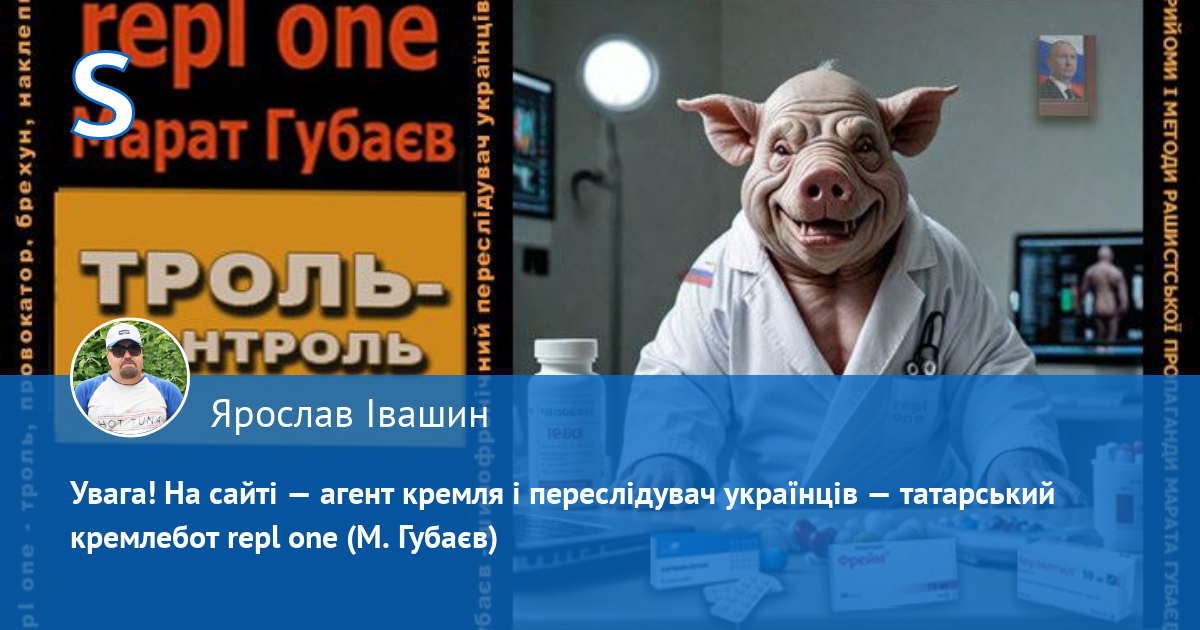Кремлівського свинопса Губаєва, який прикриваєтьсться анонімним агентурним псевдо repl one, а також проНАТОвською і антиросійкою риторикою, вкотре виведено на чисту воду і викрито, як агента, що працює на рашистів.