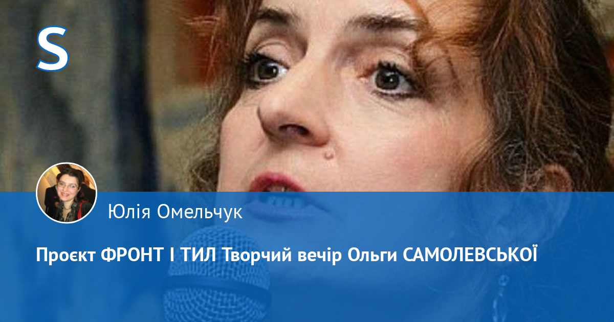 Київський будинок учених Національної Академії наук України (вул. Володимирська, 45-а) став гостинним майданчиком для цікавого й корисного гуманітарного проєкту під промовистою назвою «ФРОНТ І ТИЛ». Так, однією із зустрічей стала поетично-кінематографічна програма кінорежисерки й поетки Ольги САМОЛЕВСЬКОЇ.
