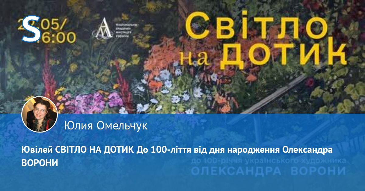 Запрошуємо Вас відвідати ювілейну виставку «СВІТЛО НА ДОТИК», до 100-річчя від дня народження видатного українського художника, заслуженого діяча мистецтв України Олександра Васильовича ВОРОНИ. Експозиція працюватиме у виставковій залі Національної Академії мистецтв України, що по вулиці Бульварно-Кудрявській, 20.