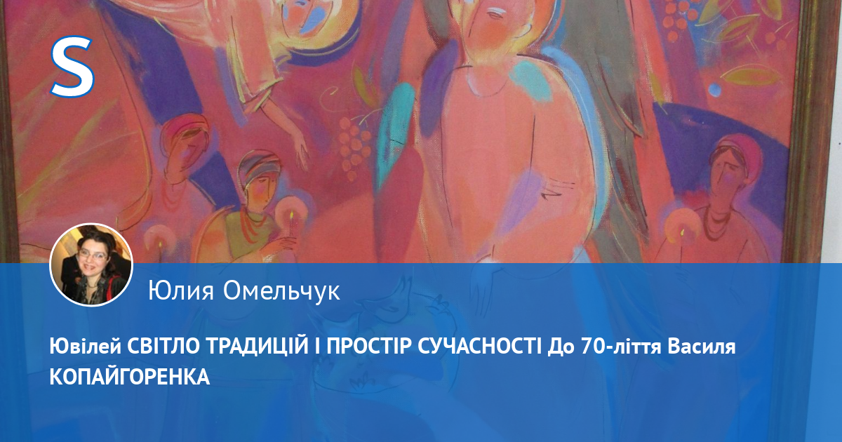 Василь КОПАЙГОРЕНКО — відомий український митець. Свою круглу дату Василь Валентинович відзначив прекрасною виставкою «СВІТЛО ТРАДИЦІЙ І ПРОСТІР СУЧАСНОСТІ», що відбулася в галереї «Митець» Київської організації Національної спілки художників України.