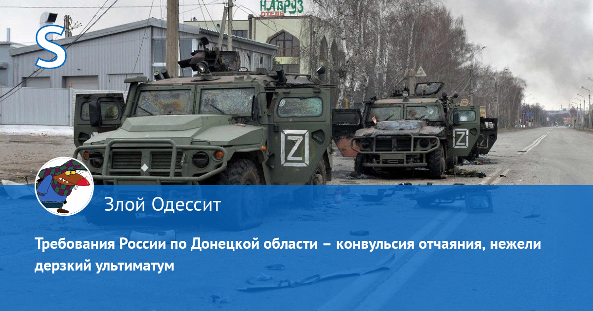 Российская армия просто не вытягивает то, что они называют «СВО», поэтому они и пытаются торговаться по территориям, пытаясь сохранять непоколебимую мину, при отвратительной игре. Но торгуются они в отношении того, что торгу вообще не подлежит и даже не обсуждается.